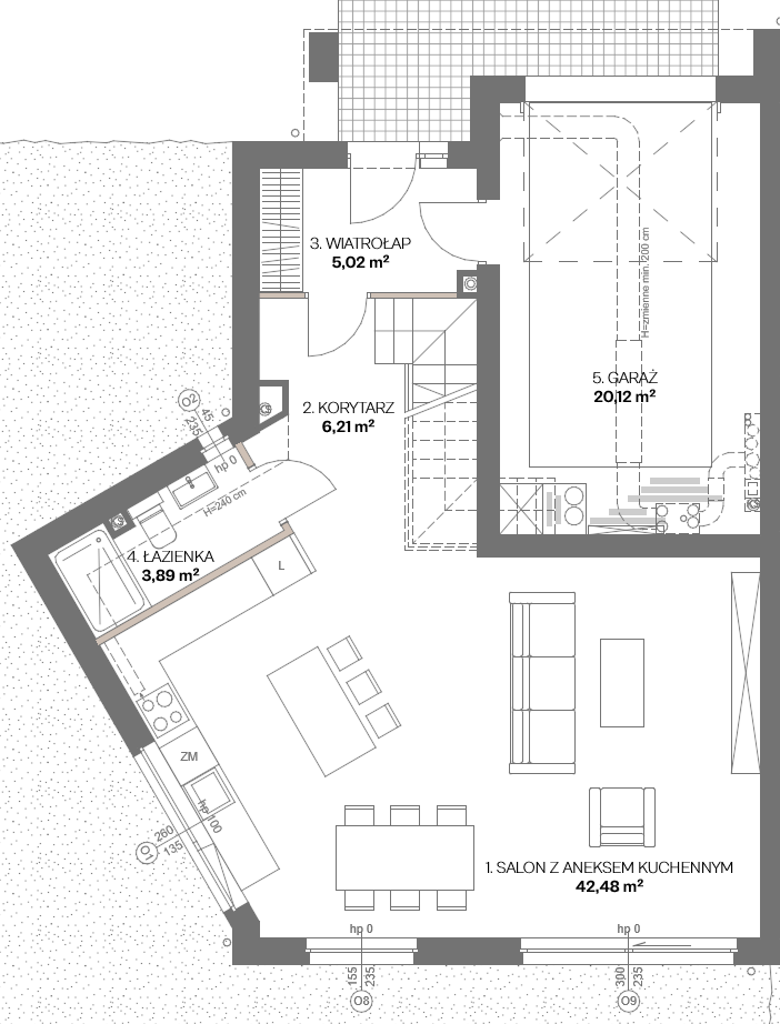 • Pokój dzienny z aneksem kuchennym 42,48 m2