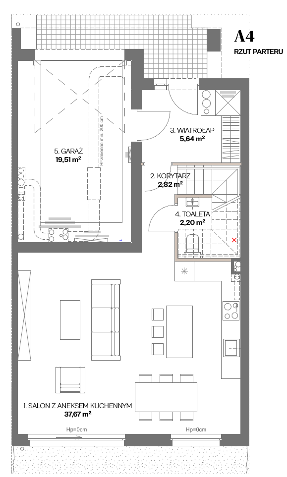 • Pokój dzienny z aneksem kuchennym 37,67 m2